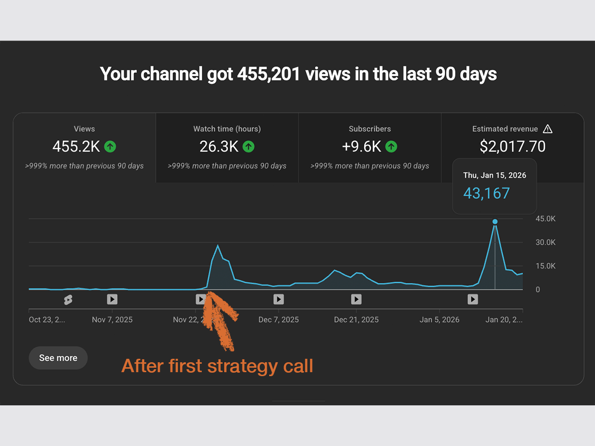 In other words: a few targeted changes to CTR + retention compounded into a major step-change in views, watch time, subscribers, and revenue — driven by strategy, not a complete overhaul of her channel.